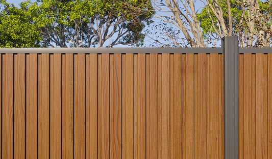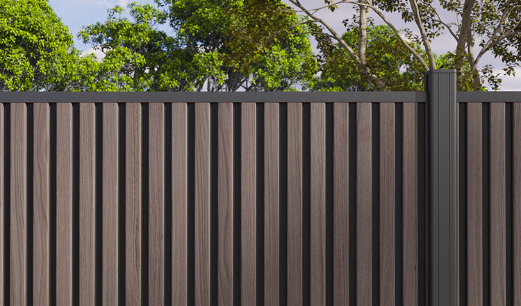 All-Weather WPC Composite Fence Slat Panel System - Weathered Teak