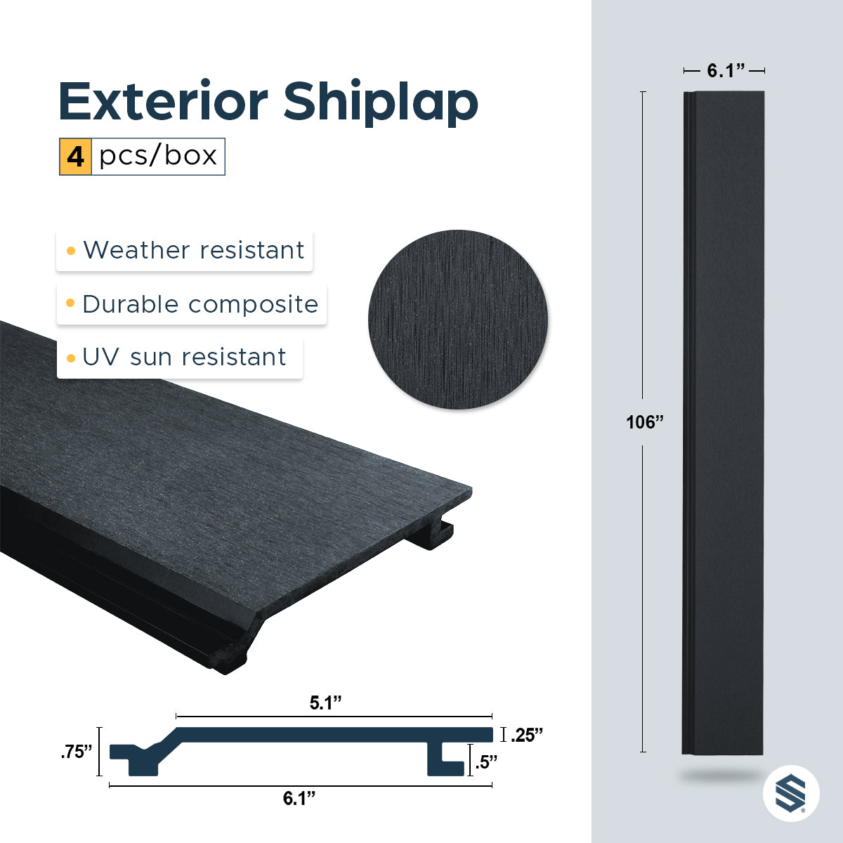 All-Weather Composite Siding System Shiplap Board - Ebony