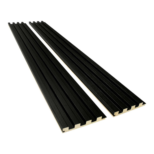 Ultra Black Slat Wood Panels for Walls - Sleek (106" x 5 3/4")