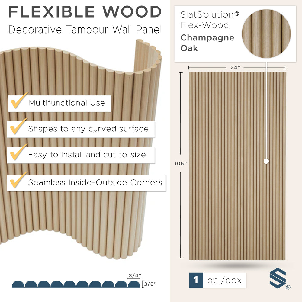 Introducing SlatSolutionĀ® FLEX-WALL wooden panels. Designed to bend to any curved surface adding a unique natural wood aesthetic needed for creative design.