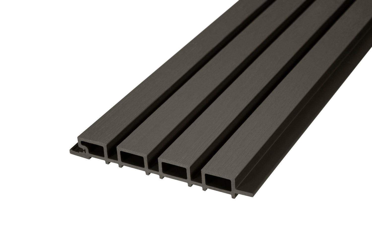 The Driftwood – All-Weather Composite Slat Panel System for Outdoor Siding – 4-Strip Panel with 1.5" Slats is a specification-grade exterior cladding solution designed for modern siding, architectural facades, and outdoor wall systems. Finished in a darker brown Driftwood tone, this composite slat panel system provides the natural look of stained wood with the durability of all-weather WPC construction, making it ideal for contractors, builders, designers, and architects specifying exterior wall materials for residential and commercial projects.