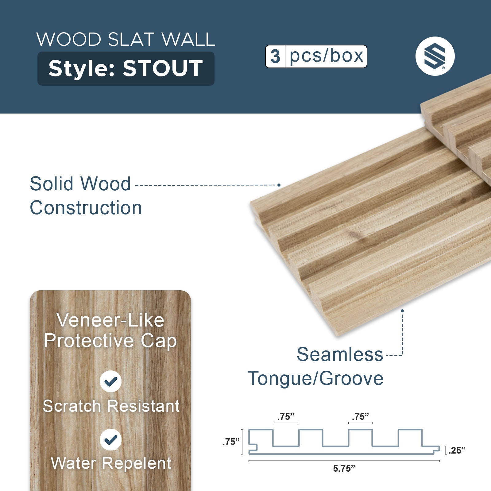 Product Specifications - Light Walnut Wood Slat Panels for Walls - Stout