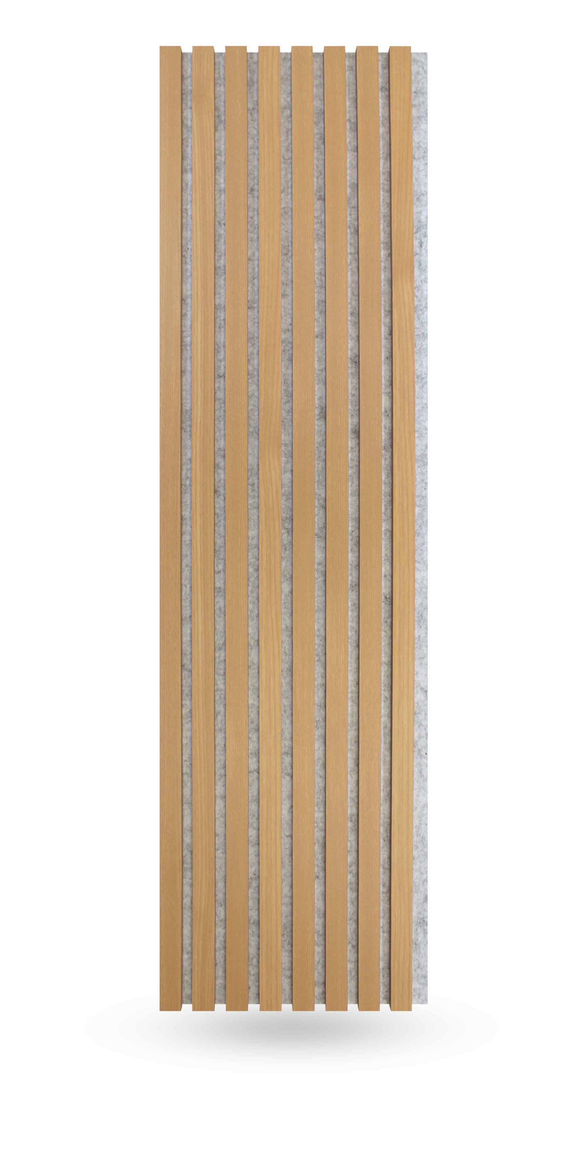 Our finest soundproofing panels, these (white felt backing)Ā natural oakĀ acoustic slat wood paneling for soundproofing walls feature unrivaled noise canceling materials. Constructed from eco-friendly MDF, the slats are fully wrapped in heavy-duty wood veneer finish. Furthermore, the white/light-gray backing is made from high-density acoustical fiber which is excellent for enhancing sound quality, increasing privacy, containing unwanted noise from escaping, and manyĀ otherĀ benefits.Ā