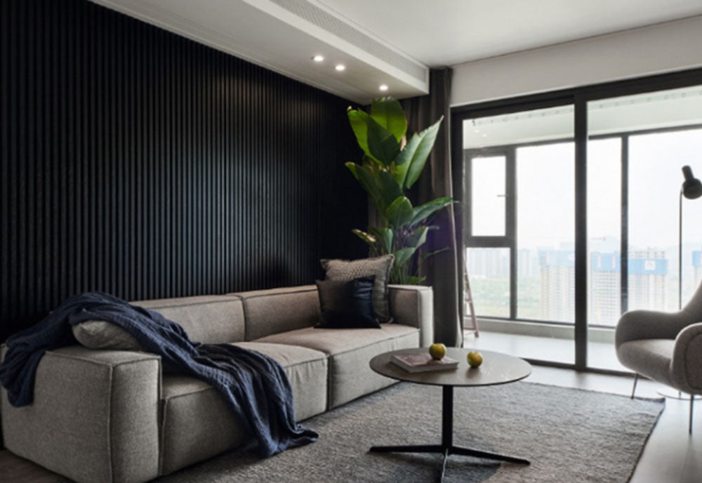 Ultra blackĀ wood slat panels for walls can add a bold and dramatic statement to interior spaces. Black is a powerful and versatile color that can create a contemporary, edgy, and sophisticated look. Furthermore, black slat panels create a strong contrast when combined with lighter-colored elements in the room. This contrast enhances the visual impact and draws attention to the accent walls.